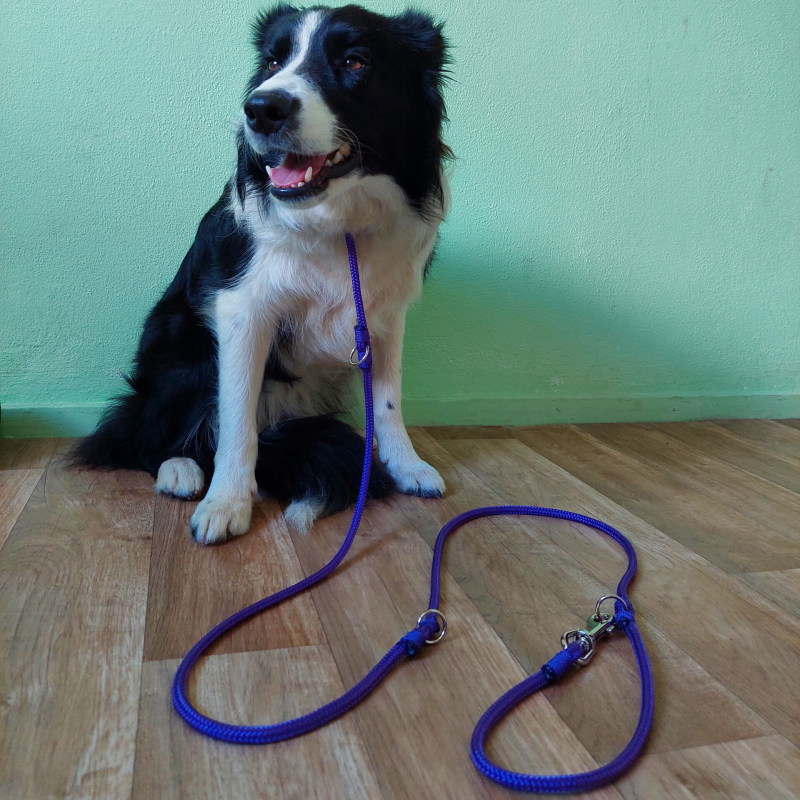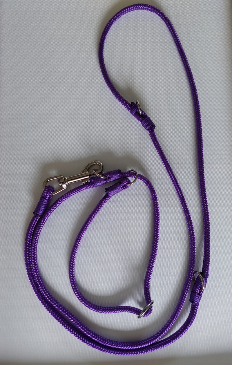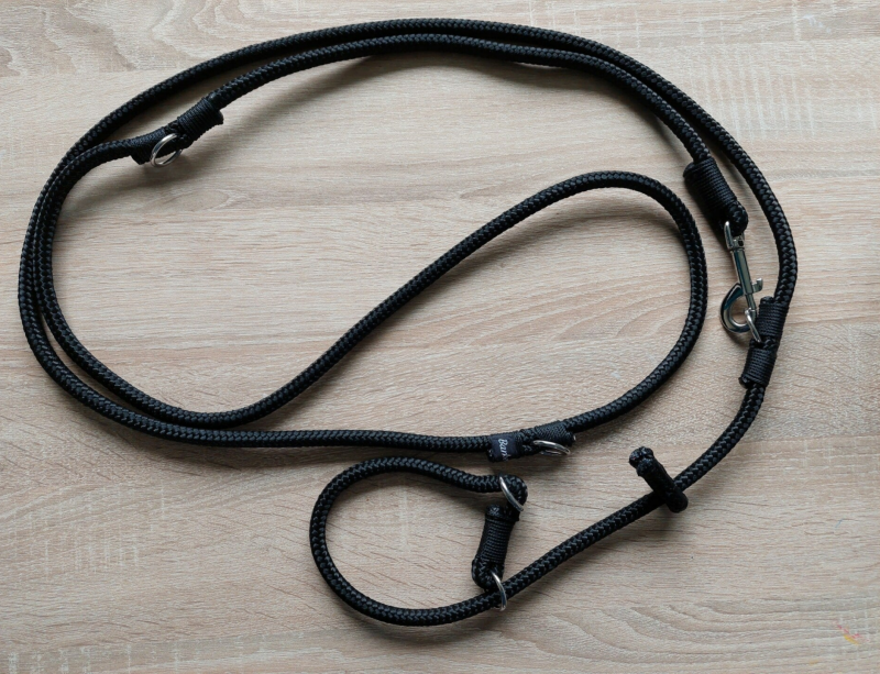 1 riem in 3 lengtes te verstellen. Met aan het eind een karabijnhaak. Je kan ook los een halsband met riem bestellen