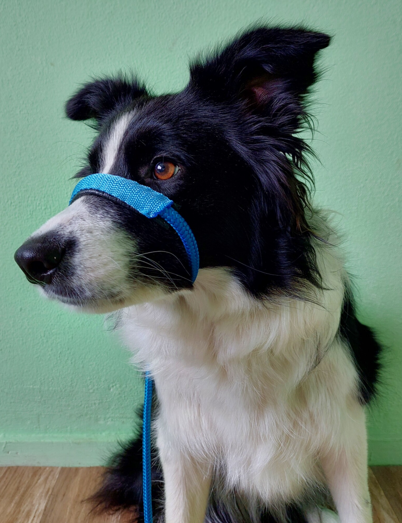 Zacht op de neus. Het is mogelijk om het zachte deel te schuiven. De riem eindigt in de nek. Dit is een fijne manier voor honden die heel erg trekken en alles om zich heen zien. Met de basis van de Best companion riem is het ook mogelijk om de riem op deze manier om te doen. Dat doen heel veel mensen. Door de riem op deze manier te dragen is dat veilig voor de nek van de hond. De hond loopt niet te hijgen aan de halsband en je hebt ook controle over de kop wat een tuig niet heeft. Je moet alleen wel leren hoe je dit gebruikt. Hoe doe je hem om? En de eerste keer als de riem omgaat gaat de hond hem proberen af te krijgen. Hij zal het met zijn poot proberen, steigeren als een wild paard enz. Houdt de riem recht ophoog en ga mee met hoe hoog de hond zich houdt. Dus als hij opspringt gaat je arm omhoog. De introductie is het succes van het dragen van de riem. Dus als hij probeert de riem af te doen en je geeft het op werkt het niet. Vraag voor advies.