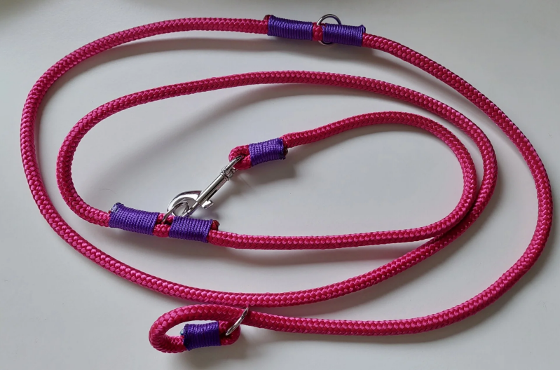 Karabijnhaak: Deze haak kan je gebruiken om de riem te verstellen. Mocht je 2 honden hebben kan je ook een 'splitter' laten maken zodat je 2 honden aan een riem kan doen